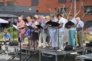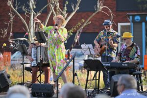 De aftrap werd gegeven met een aperitiefconcert, muzikaal geflankeerd door – hoe kan het anders – Zafflo & Co. Meezingen was geen keuze, maar een natuurlijke reflex, al zittend tussen het ca 70-koppige publiek of… op het podium. Twee aanwezige jongeren werden zelfs ingeschakeld als percussionisten.