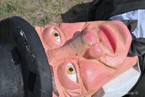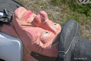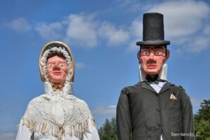 En dit alles onder het goedkeurende oog van Manten en Kalle! Al verliep de namiddag voor hen iets minder succesvol. Een windstoot vloerde de beide reuzen met een gebroken neus en een gescheurde hoedrand voor Manten tot gevolg. Het leek wel of de reuzen zich neergelegd hadden bij het jammerlijke feit dat er weer geen dragers gevonden werden. Na de eerste zorgen – toegediend door Karolien en Luc – konden er toch weer enkele foto’s genomen worden met het reuzen echtpaar.