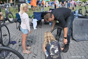 Workshops nodigden uit tot betrokkenheid: hoe plak je een fietsband? Linedance bleek plots veel beweeglijker wanneer het live werd gedemonstreerd. Al beperkten de meeste mannen zich tot toekijken en filmen. En wie iemand op de mat zag vloeren tijdens een Ju Jitsu-demonstratie, voelde de impact! Met het Zaffelaarse Sint-Ceciliakoor als orgelpunt was dit een dag om in te kaderen.